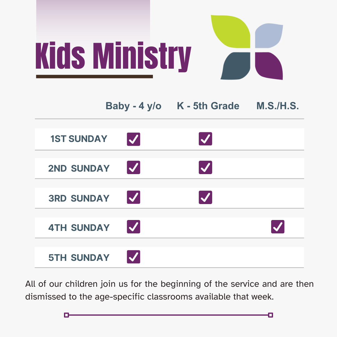 Enter the building using the downstairs entrance, near The Treehouse sign. Questions? Reach out to our Director of Kids Ministry, Alison Lake.
